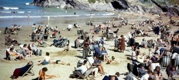 Πρόκειται για μια φωτογραφία από τον Β' Παγκόσμιο Πόλεμο την οποία δημοσίευσε ο Στιούαρτ Χάμφρις στο Twitter. Η φωτό απεικονίζει εργάτες εργοστασίου να ξεκουράζονται σε παραλία της Κορνουάλης. «Μπορείτε να καταλάβετε ποια παραλία είναι», ρωτάει.