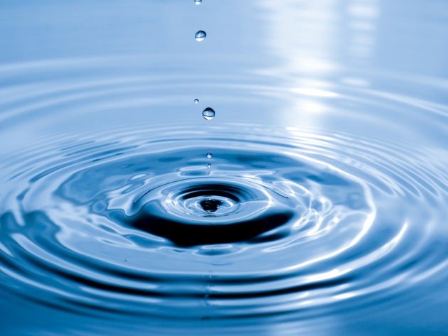 close up drop of water on blue background