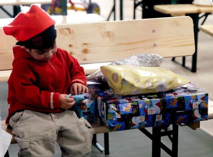 Φωτογραφία αρχείου δώρο Χριστουγέννων σε παιδί πρόσφυγα. PICTURE ALLIANCE VIA GETTY IMAGES